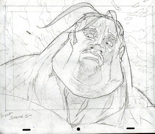 What I've done here are some layouts on animation paper for certain shots and characters. I think some of these might be overly ambitious and then again some might not be. We'll see! Overall I was just trying to solidfy the drawing style, char design and camera shots. I feel that, among other influences, Kawajiri of Ninja Scroll/Vampire Hunter D/Highlander/Animatrix Program fame, is a big one for me along with other things as well.