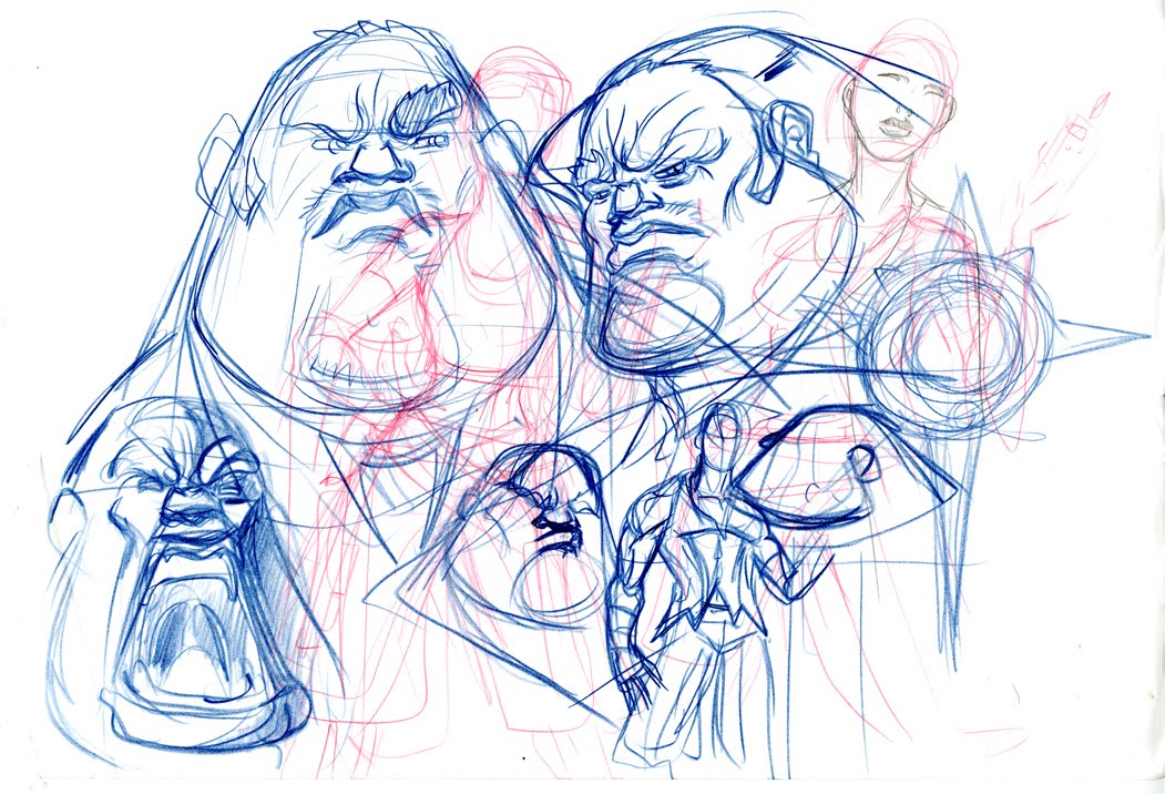 Very little to say here save that here's a dump of some images, recently scanned, sketched and drawn up. Collection of sketches, marker studies of other art and rough layouts. http://mikewinnart.deviantart.com has more. I've also finally dropped cash for am intuous 4. I'm getting all high tech and stuff.